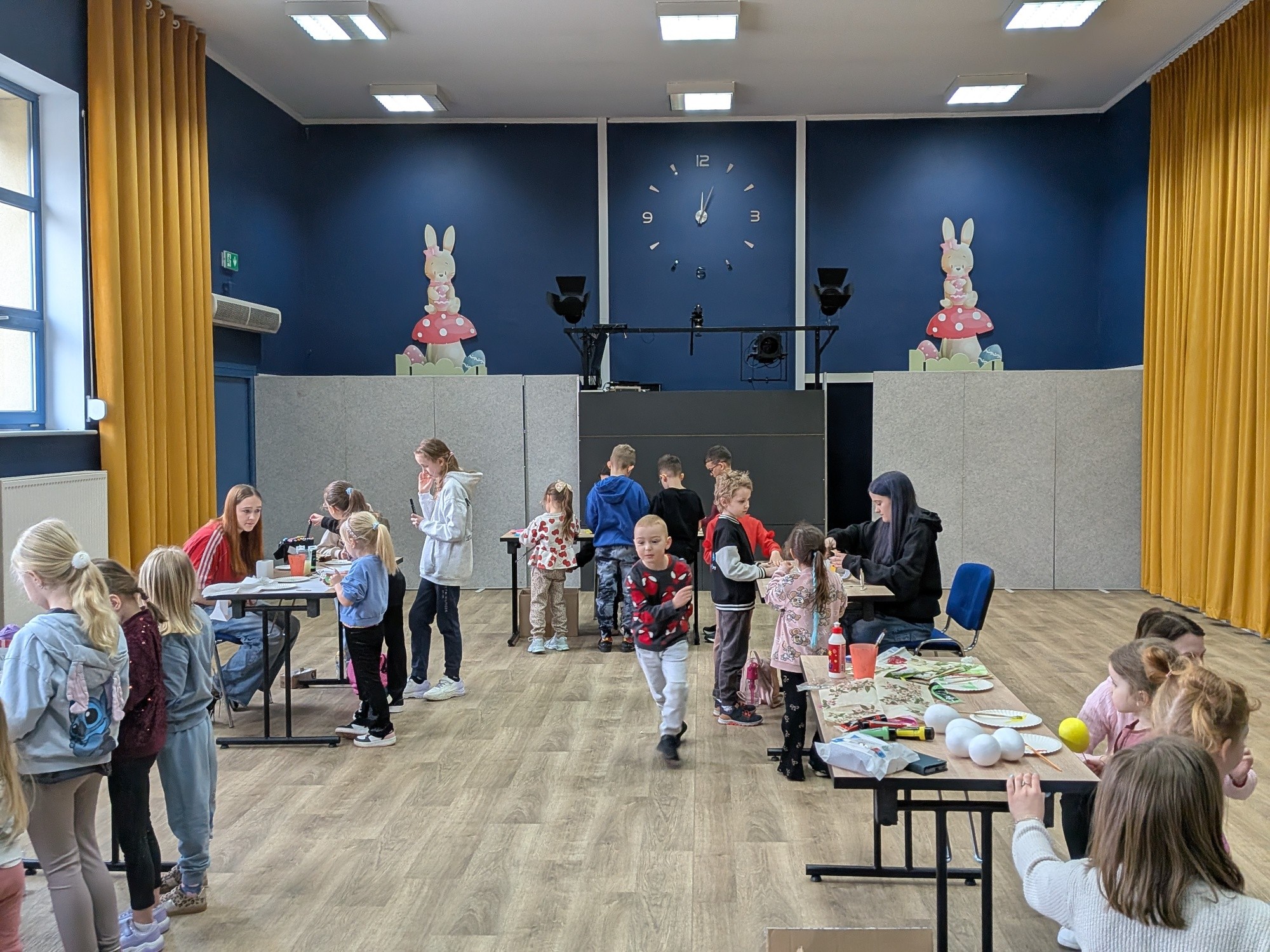 Ależ to był wyjątkowy dzień! Nasz Dom Kultury wypełnił się radosną atmosferą, kolorami i twórczą energią najmłodszych uczestników wielkanocnych warsztatów. Przestrzeń zamieniła się w prawdziwą fabrykę wielkanocnych cudów, a kreatywność dzieci nie miała żadnych granic.