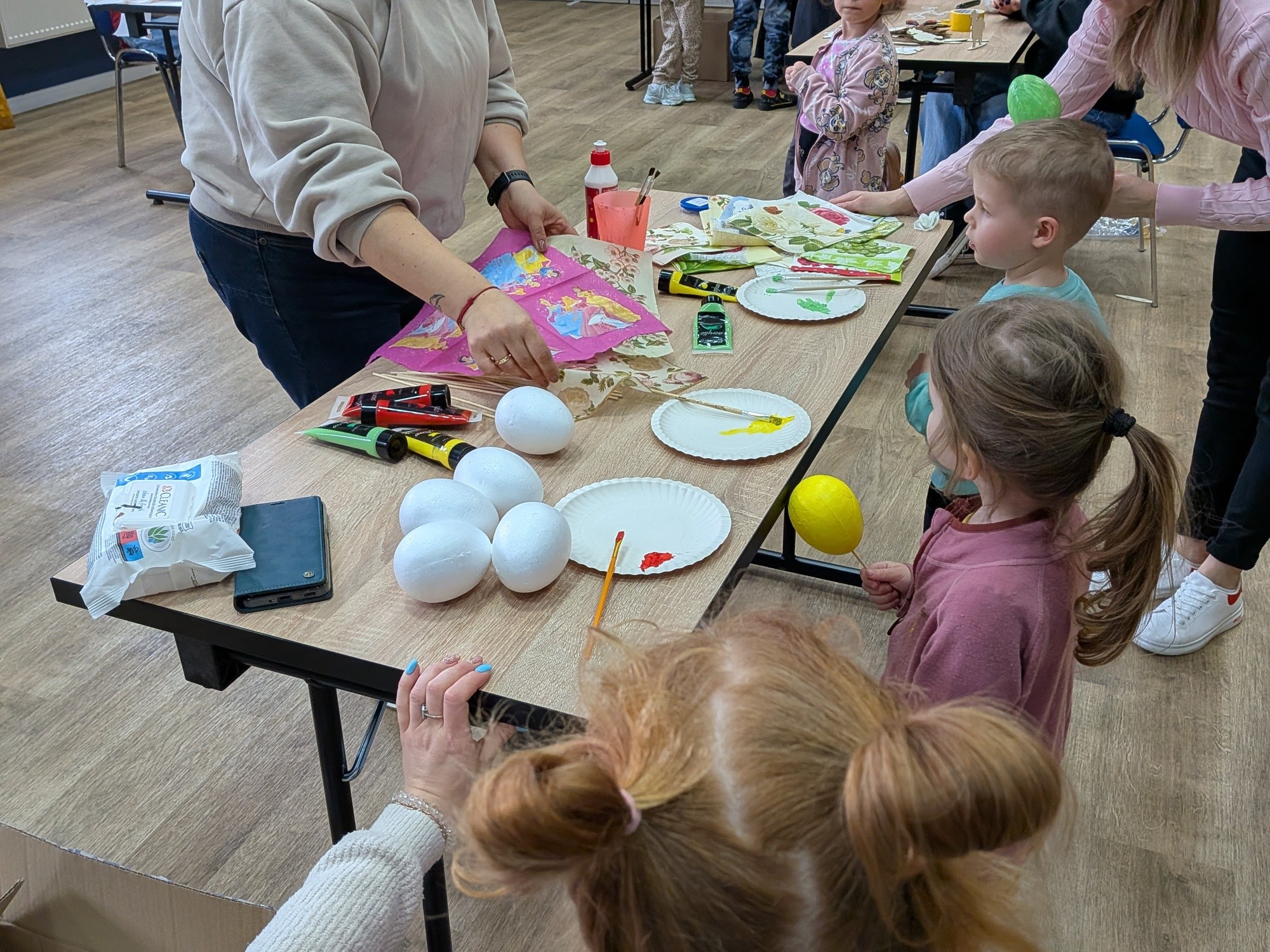 Na zakończenie czekała na dzieci wyjątkowa niespodzianka. Okazało się, że w okolicy BiOK pojawił się Wielkanocny Zając, który ukradkiem zostawił słodkie upominki. Poszukiwania czekoladowych niespodzianek wywołały mnóstwo emocji i radości, a uśmiechy na twarzach dzieci były najlepszym podsumowaniem tego dnia.